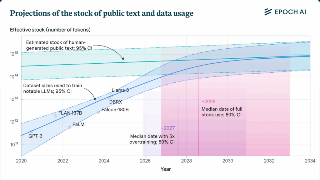 According to a San Francisco-based AI research group, Epoch AI, at the current rate at which models are eating data, the total amount of human-generated content found on the internet could run out as early as 2026: